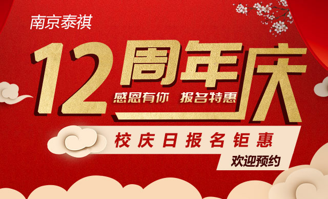 泰祺教育,2007年直营进驻南京,时光荏苒,岁月匆匆,2019年8月,泰祺教育南京分校将迎来12周岁。从最初的一个校区到目前开设珠江路、鼓楼、江宁、河西、仙林、浦口等六个校区,12年不忘初心,12年专业服务,12年砥砺前行!