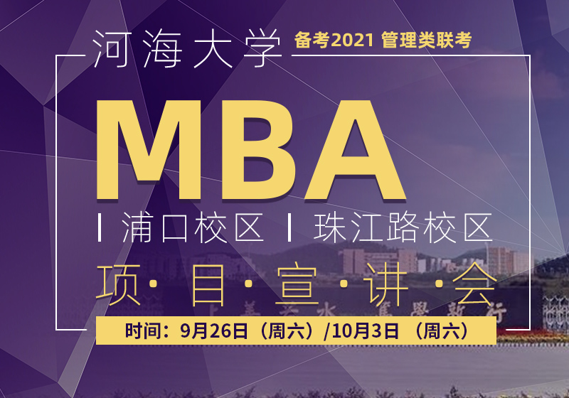 河海大学成立于1915年,是一所拥有百余年办学历史,多学科协调发展的教育部直属全国重点大学,是实施国家“211工程”重点建设、国家优势学科创新平台建设、一流学科建设以及设立研究生院的高校。学校在南京市、常州市设有西康路校区、江宁校区和常州校区,占地面积2462亩。河海大学商学院是江苏省内同时拥有工商管理博士点和博士后流动站的两所院校之一。2015年率先完成AMBA国际认证,是江苏省唯 一通过AMBA再认证的MBA项目。教育部最 新一轮的学科评估当中,工商管理学科位列全国前20%,江苏省第二位。MBA项目按培养方式分为全日制和非全日制,其中,非全日制按特色分为海纳百川MBA和上善若水MBA。