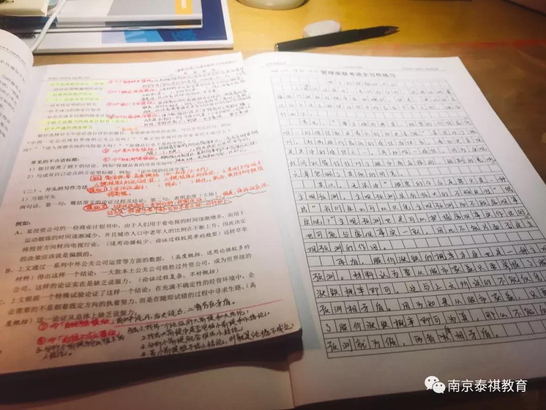 做真题后不难发现,现在联考的知识点越来越细、题目也越出越活,只学习重点知识点而不搭建学科的整体框架是比较冒险的,想要取得高分就更难。在备考的前期阶段,不建议过分追求所谓的技巧,且我认为真正的技巧都是源自对知识点的牢固掌握和熟悉运用。泰祺专业系统的线上与线下课程是我复习备考的“大靠山”:线下听课有代入感,出现问题能现场反馈;线上听课方便快捷,能随时暂停或重听,用作巩固复习很不错,可针对自己的薄弱学科和知识点“对症下药”。我数学不好,泰祺线上线下所有数学老师的课几乎都听过,在班级课程不冲突的情况下我也会跑到其他班蹭课,最“疯狂”的一次下班坐高铁去苏州又连夜赶回南京。每门课程均有不同风格的老师,总有能把你教会或者激发你学习的兴趣的那一位。选择适合自己的老师和课程,有针对性地听课真的会事半功倍哦。